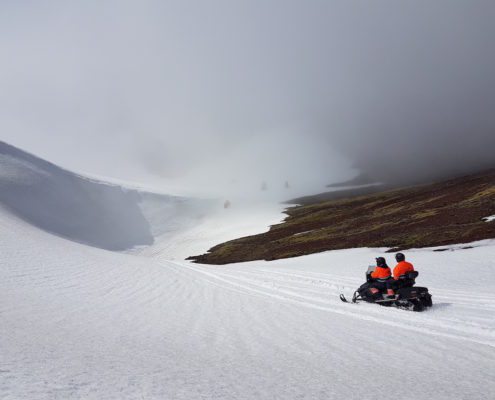 - raid en motoneige puis randonnée à pied sur le glacier,